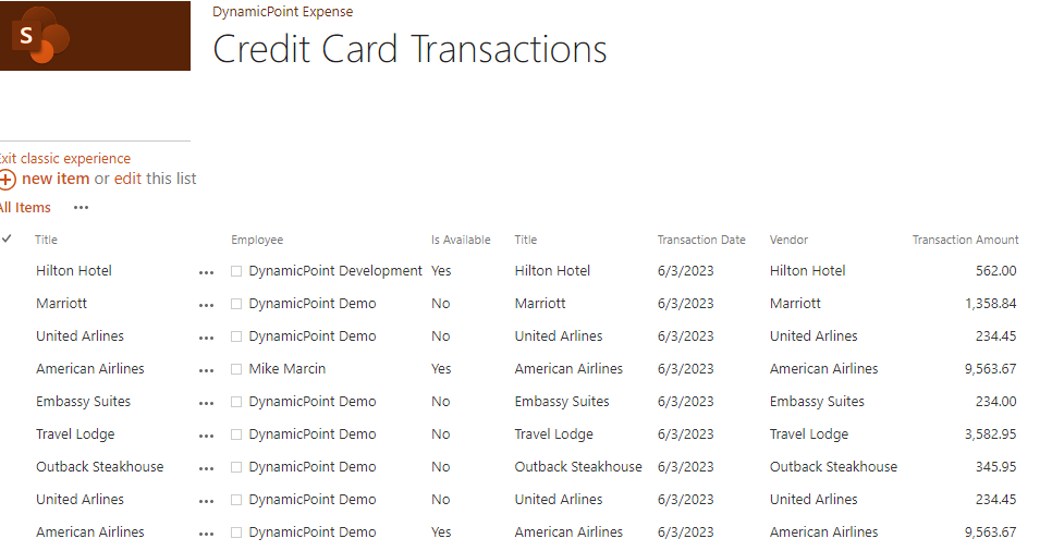 The credit card transaction list shows the list of charges that have been brought in from the credit card vendor but have not yet been processed. If they are selected on a report, then the Is Available flag will show no. After integration credit card transactions are removed from the list.