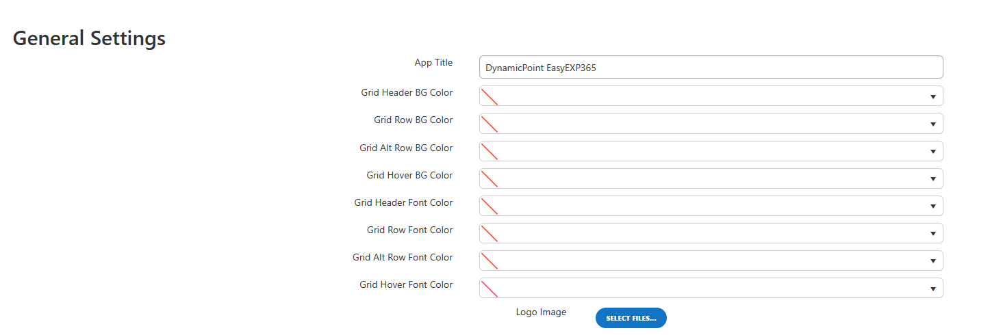 The General Settings page is used to configure the desired display of the Expense Management pages within the application.